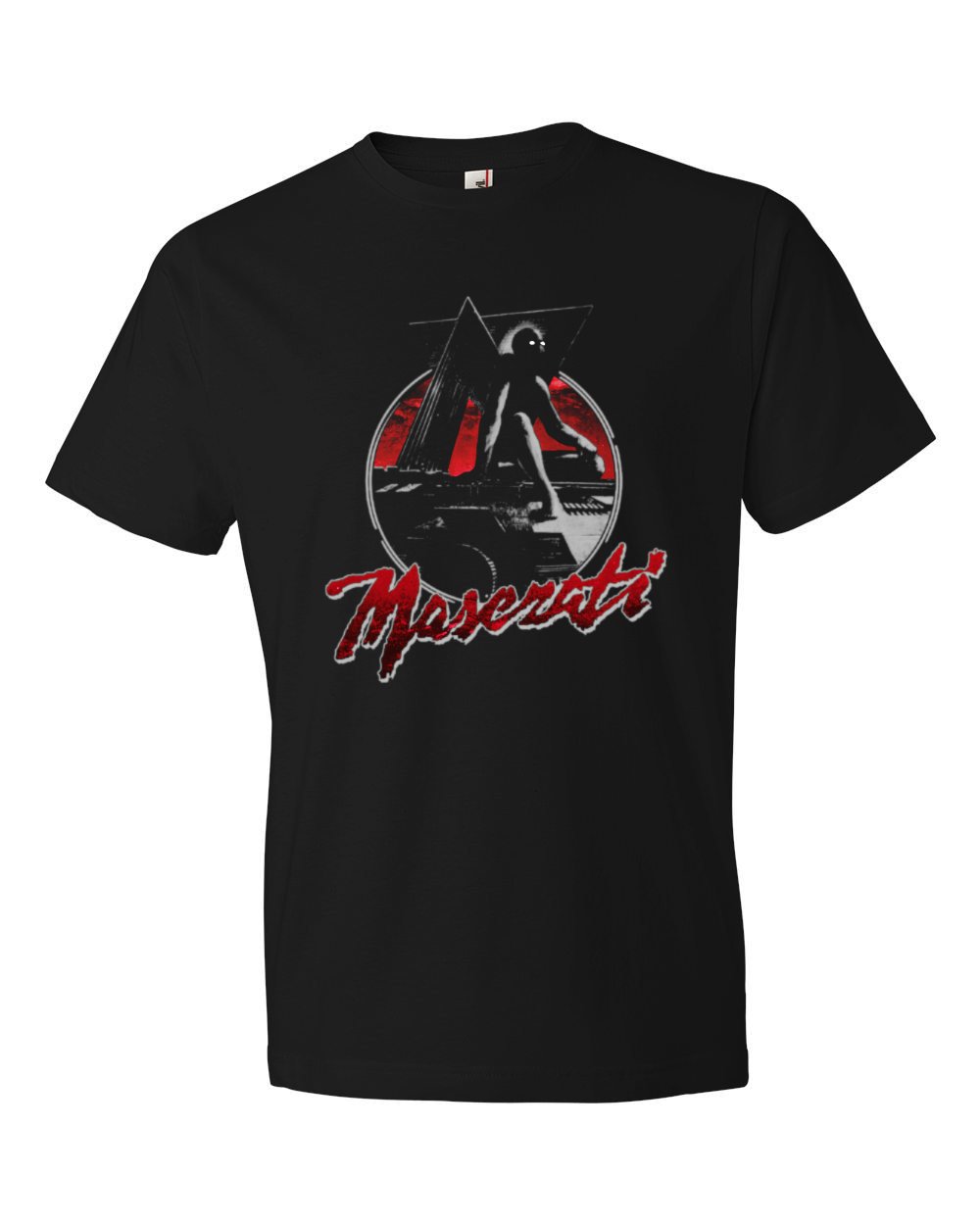 Sci-fi VHS tape-inspired design celebrating Maserati’s 2015 album of the same name. Three-color ink on Anvil 980 Standard Black shirt.